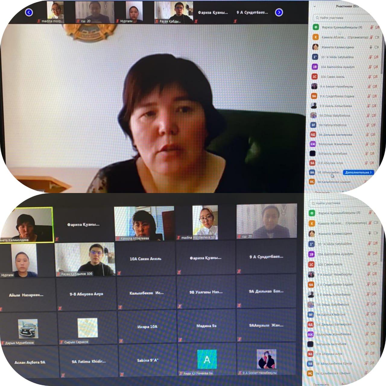 Кездесуге 9-10 сынып оқушылары қатысып, баға жетпес байлығымыз – ұлттық құндылықтарымыздың, келешегіміздің кемел болу жолында сәулесін шашып, құлдырап кетуден сақтап тұратын мәңгілік шамшырағымыз екені жайында пікір алмасты. Жаннета Амангелдіқызы әр оқушының қойған сұрағына толық жауап беріп, өмірден мысалдар келтіріп қызықты да тартымды сұхбат жүргізді.